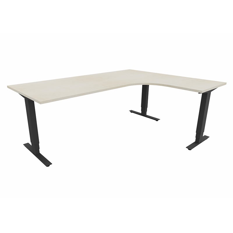 Höj- och sänkbart skrivbord Sense Aero Höger 3-ben, max 100 kg, 2000x1600, H630-1290 mm, Björk laminat, stativ Svart