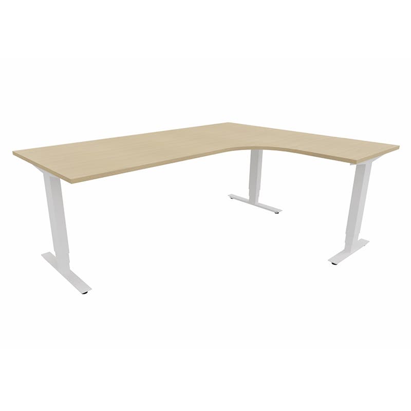 Höj- och sänkbart skrivbord Sense Aero Höger 3-ben, max 100 kg, 2000x1600, H630-1290 mm, Vit Ek laminat, stativ Vit