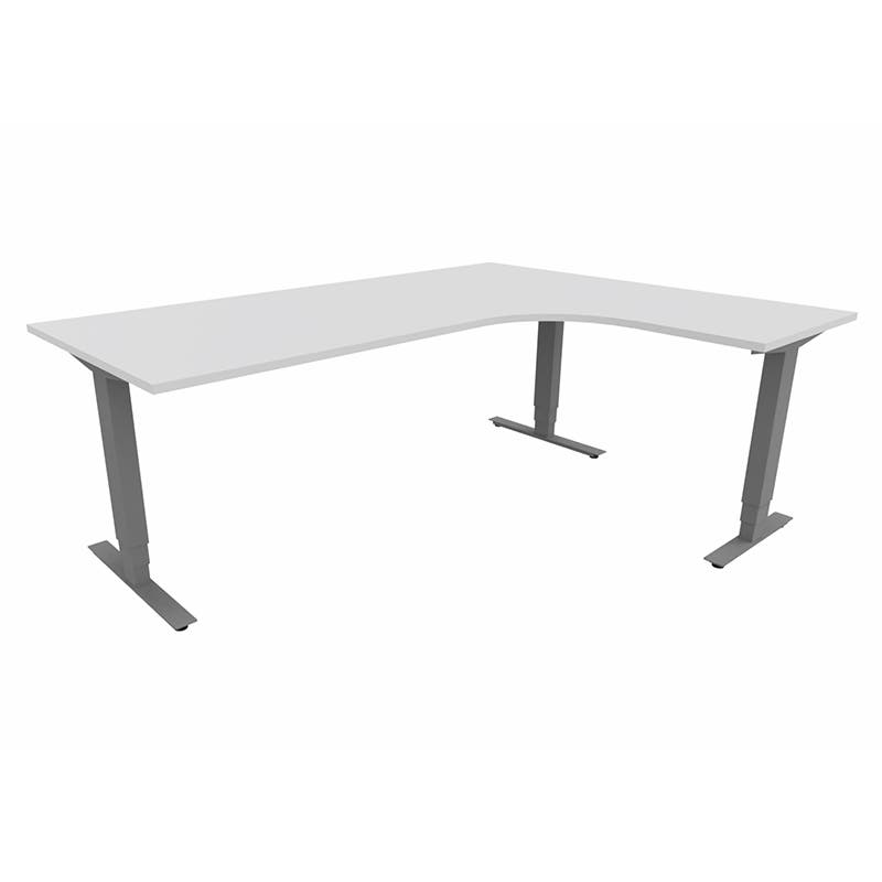 Höj- och sänkbart skrivbord Sense Aero Höger 3-ben, max 100 kg, 2000x1600, H630-1290 mm, Vit laminat, stativ Mörkgrå
