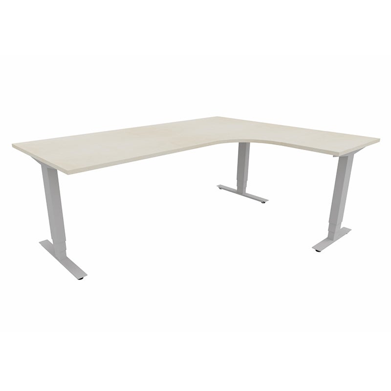 Höj- och sänkbart skrivbord Sense Aero Höger 3-ben, max 100 kg, 2000x1600, H630-1290 mm, Björk laminat, stativ Grå