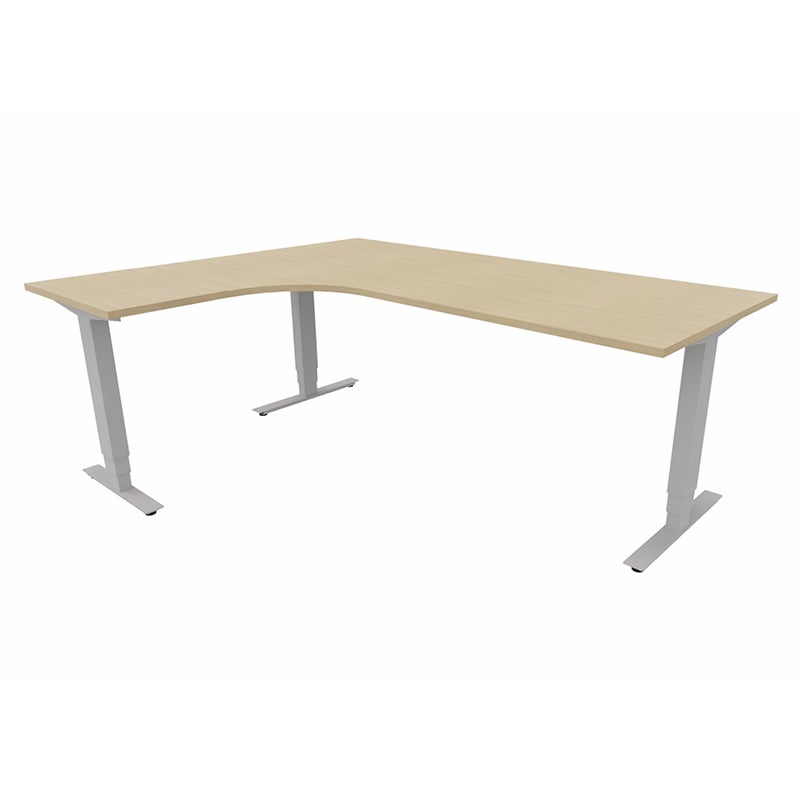 Höj- och sänkbart skrivbord Sense Aero Vänster 3-ben, max 100 kg, 2000x1600, H630-1290 mm, Vit Ek laminat, stativ Grå