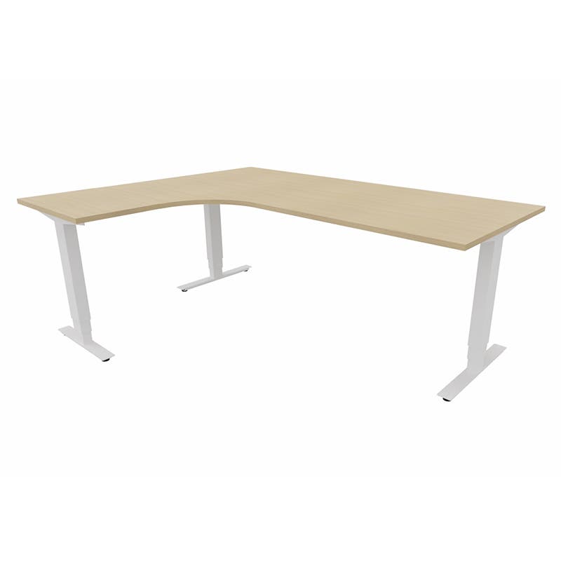 Höj- och sänkbart skrivbord Sense Aero Vänster 3-ben, max 100 kg, 2000x1600, H630-1290 mm, Vit Ek laminat, stativ Vit