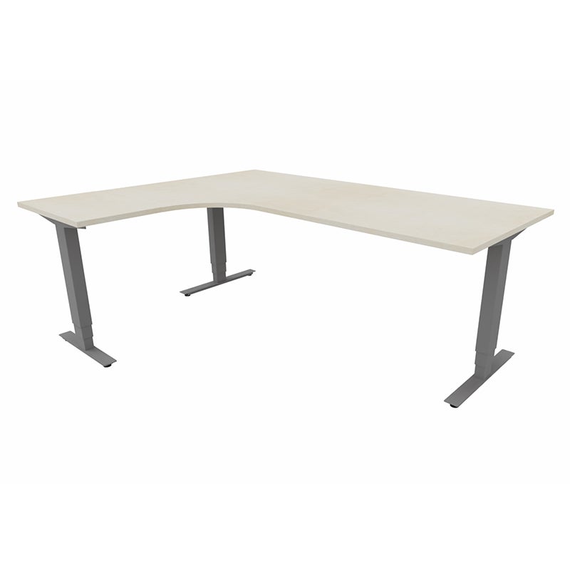 Höj- och sänkbart skrivbord Sense Aero Vänster 3-ben, max 100 kg, 2000x1600, H630-1290 mm, Björk laminat, stativ Mörkgrå