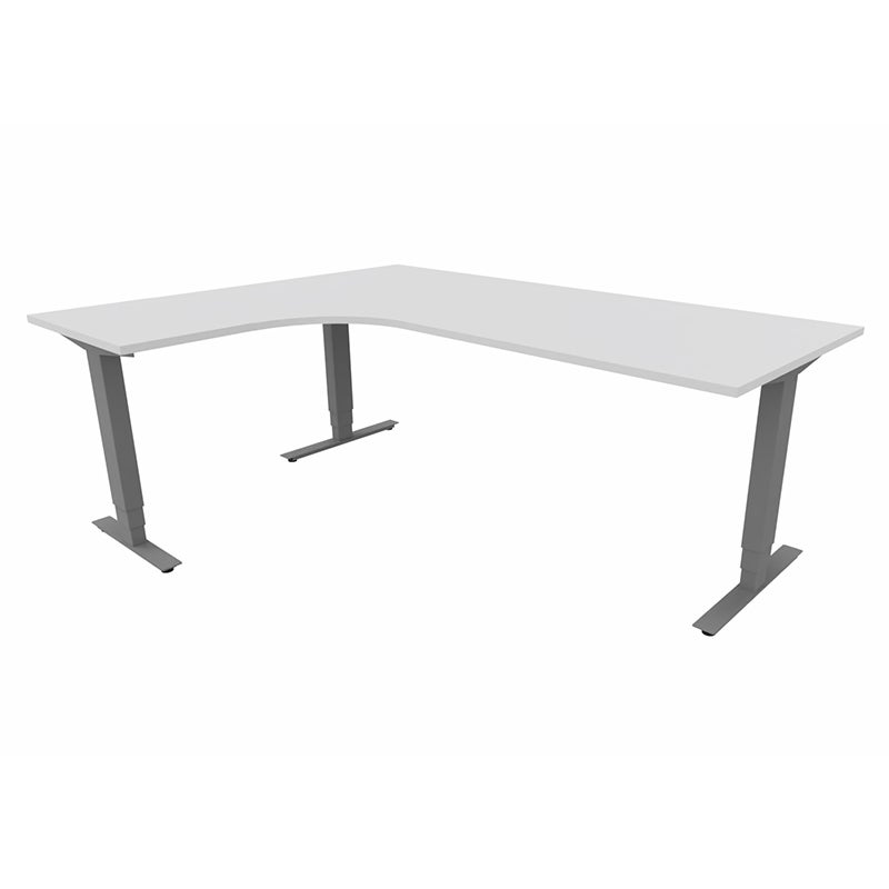Höj- och sänkbart skrivbord Sense Aero Vänster 3-ben, max 100 kg, 2000x1600, H630-1290 mm, Vit laminat, stativ Mörkgrå