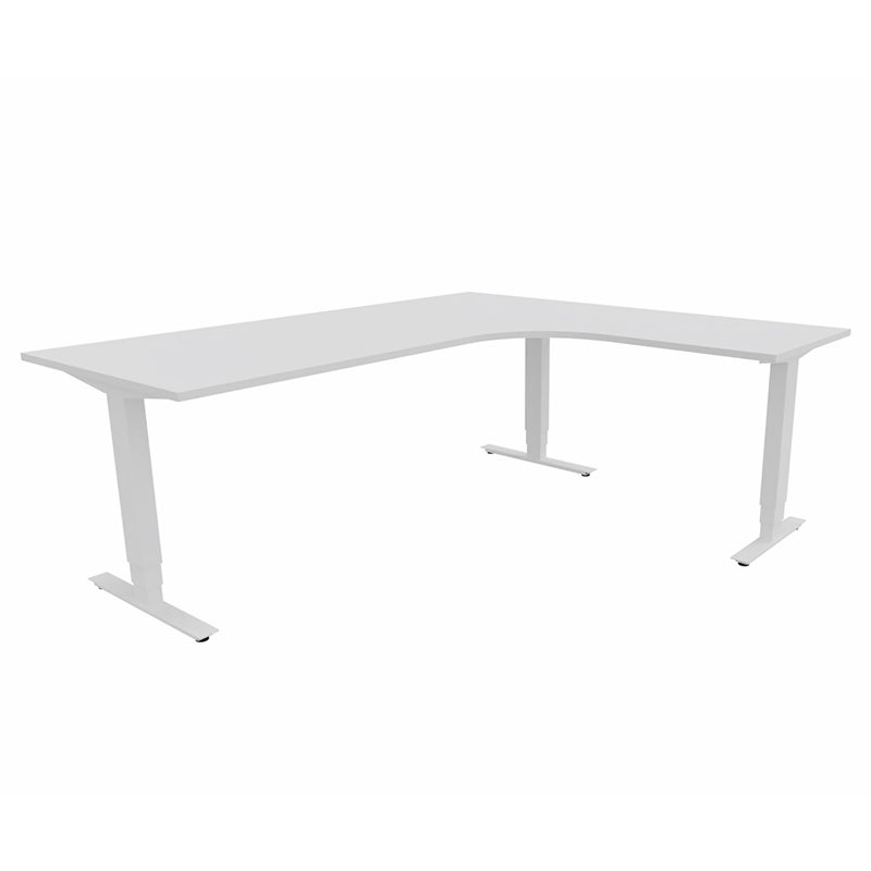 Höj- och sänkbart skrivbord Sense Aero Höger 3-ben, max 100 kg, 2000x1800, H630-1290 mm, Vit laminat, stativ Vit