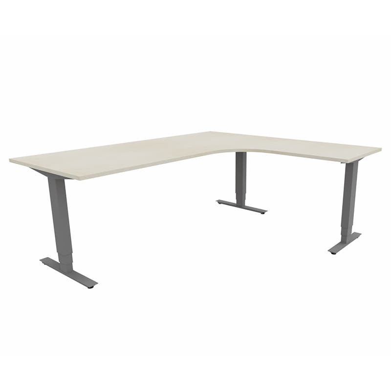 Höj- och sänkbart skrivbord Sense Aero Höger 3-ben, max 100 kg, 2000x1800, H630-1290 mm, Björk laminat, stativ Mörkgrå
