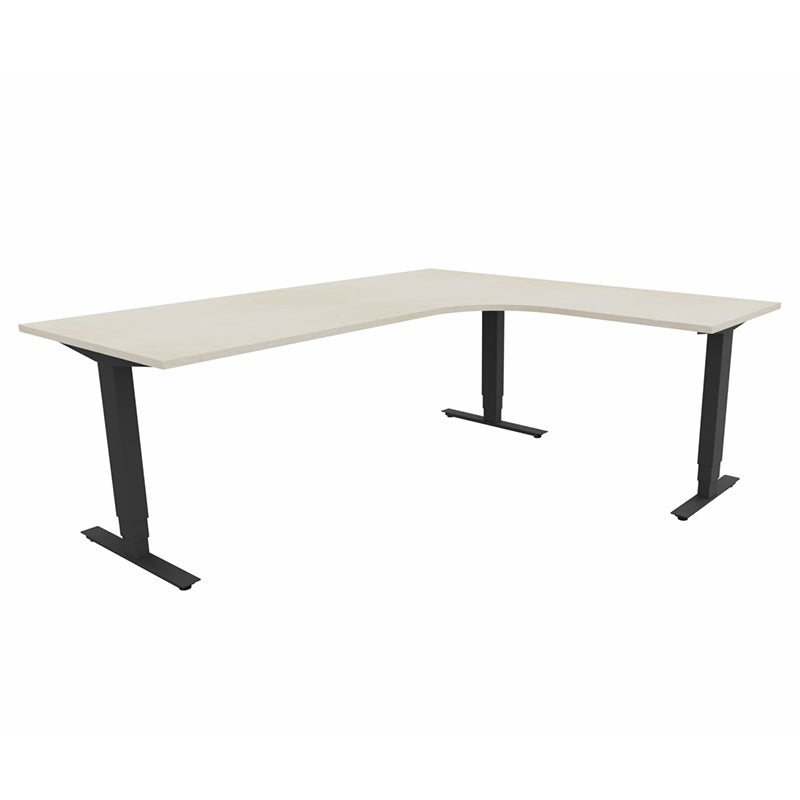 Höj- och sänkbart skrivbord Sense Aero Höger 3-ben, max 100 kg, 2000x1800, H630-1290 mm, Björk laminat, stativ Svart