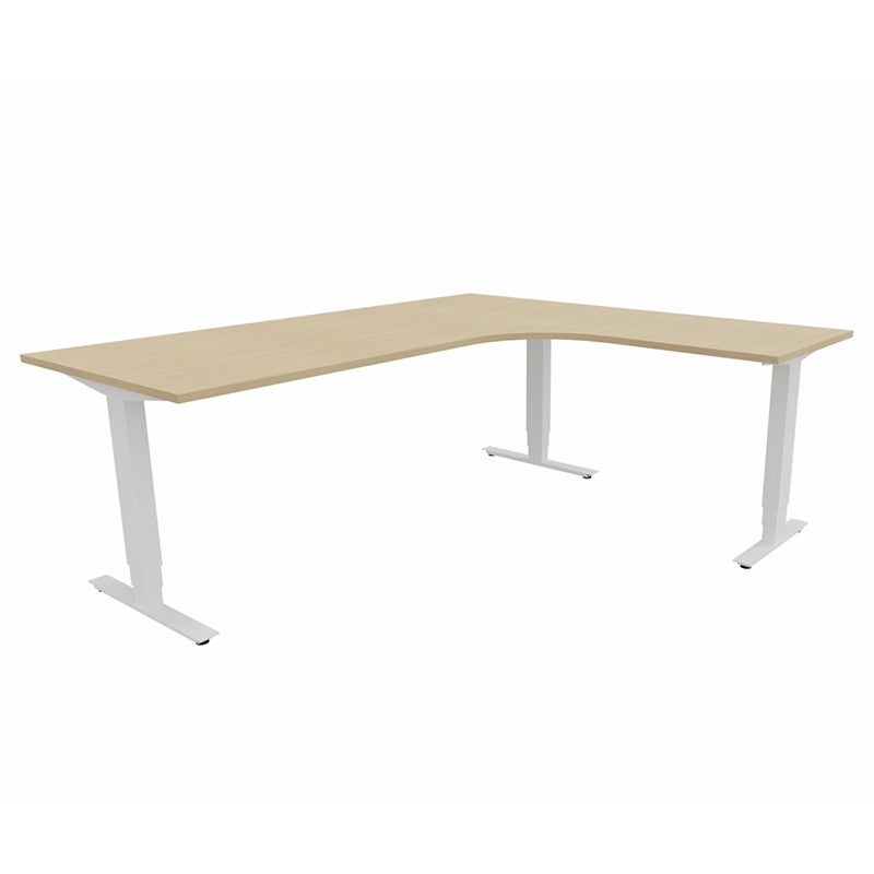 Höj- och sänkbart skrivbord Sense Aero Höger 3-ben, max 100 kg, 2000x1800, H630-1290 mm, Vit Ek laminat, stativ Vit