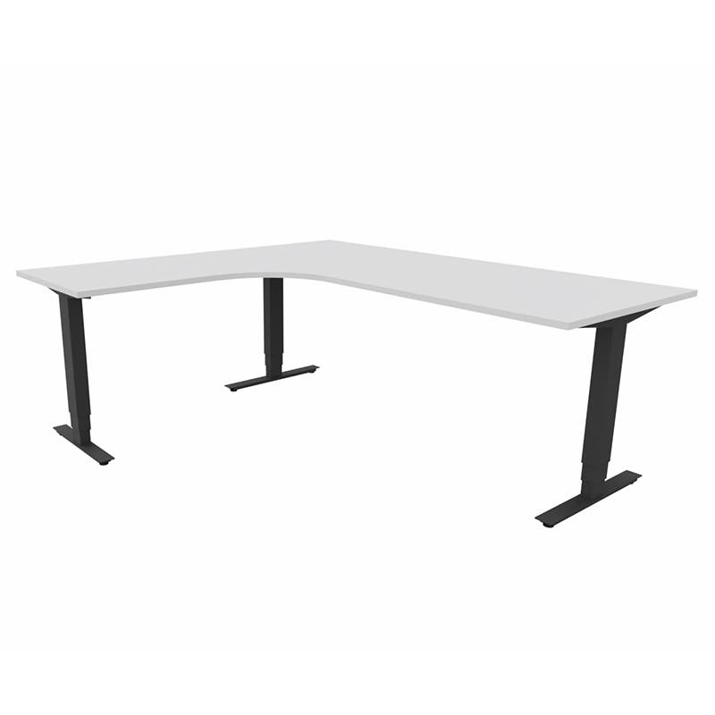Höj- och sänkbart skrivbord Sense Aero Vänster 3-ben, max 100 kg, 2000x1800, H630-1290 mm, Vit laminat, stativ Svart