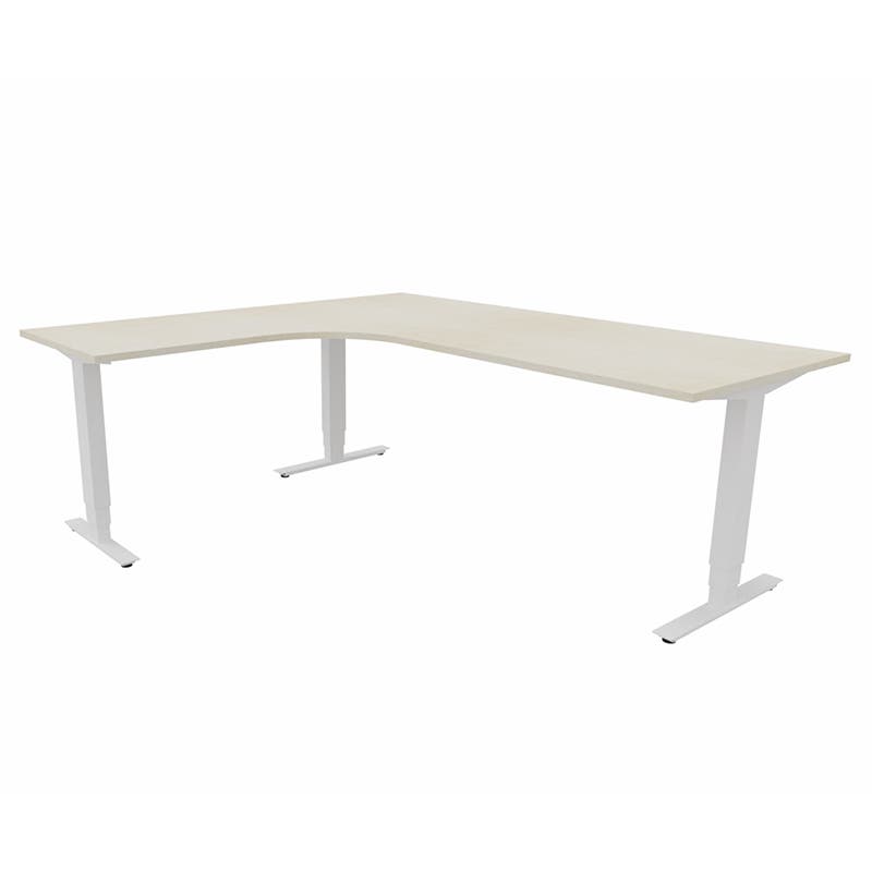 Höj- och sänkbart skrivbord Sense Aero Vänster 3-ben, max 100 kg, 2000x1800, H630-1290 mm, Björk laminat, stativ Vit