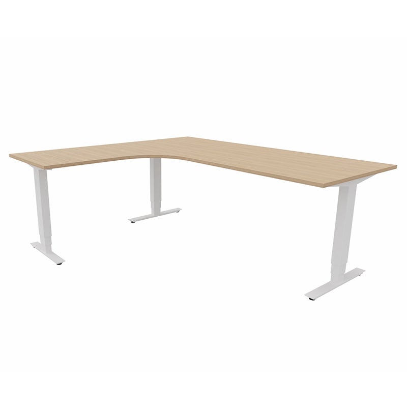 Höj- och sänkbart skrivbord Sense Aero Vänster 3-ben, max 100 kg, 2000x1800, H630-1290 mm, Amber Ek laminat, stativ Vit