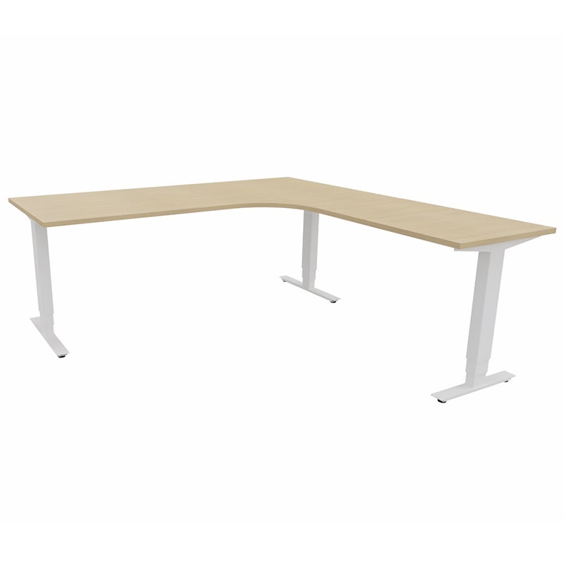Höj- och sänkbart skrivbord Sense Aero Höger 3-ben, max 100 kg, 2000x2000, H630-1290 mm, Vit Ek laminat, stativ Vit