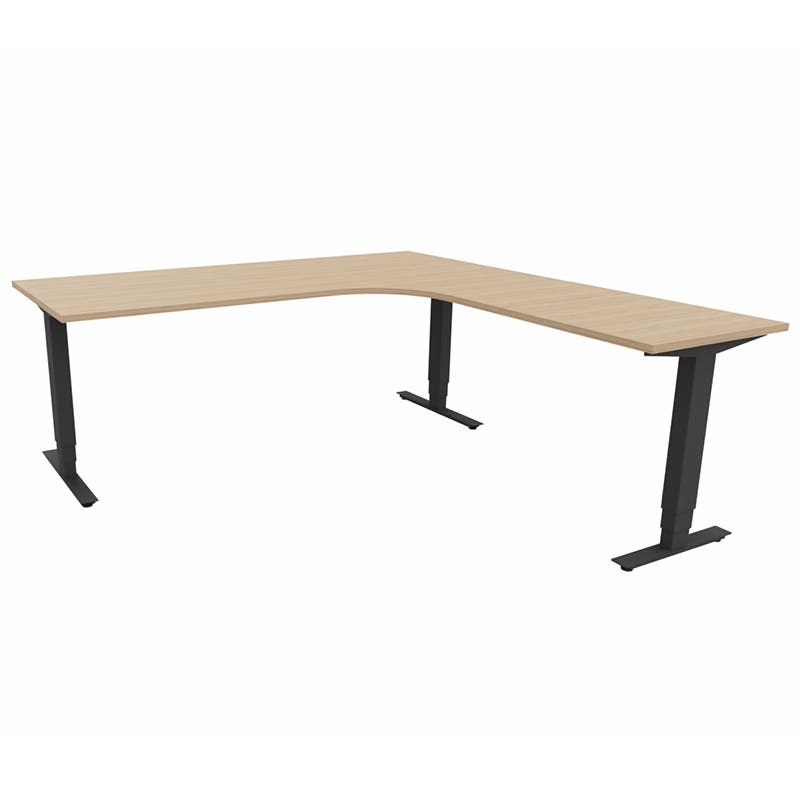 Höj- och sänkbart skrivbord Sense Aero Höger 3-ben, max 100 kg, 2000x2000, H630-1290 mmm, Amber Ek laminat, stativ Svart