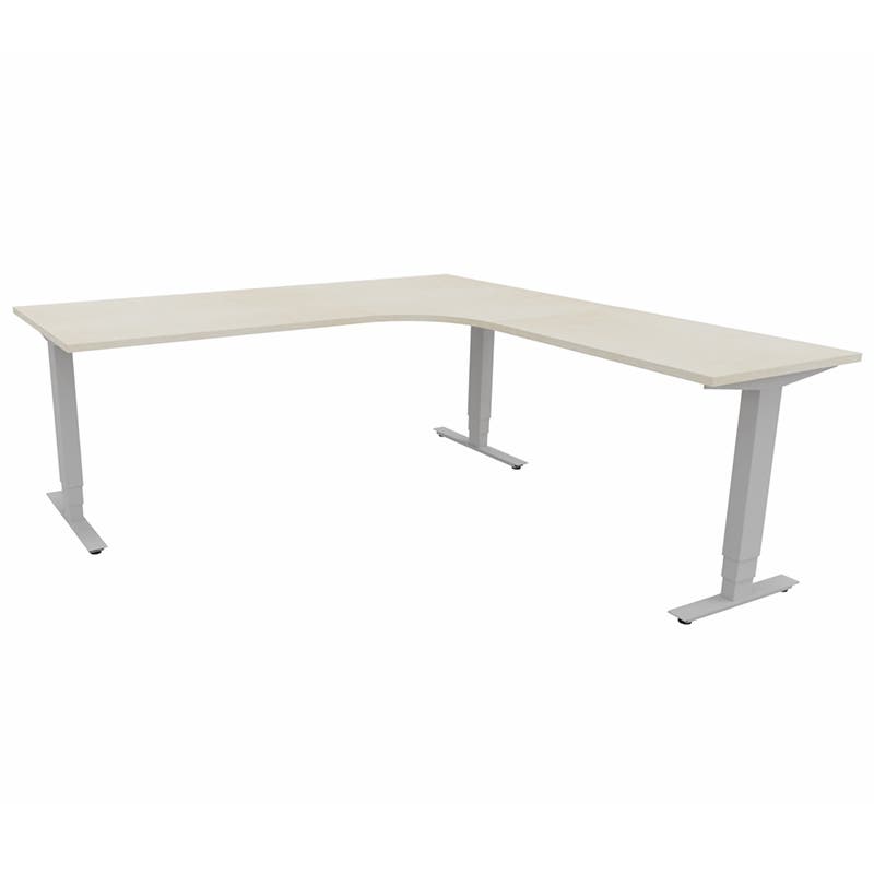 Höj- och sänkbart skrivbord Sense Aero Höger 3-ben, max 100 kg, 2000x2000, H630-1290 mm, Björk laminat, stativ Grå