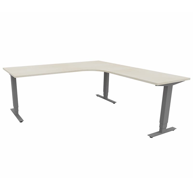 Höj- och sänkbart skrivbord Sense Aero Höger 3-ben, max 100 kg, 2000x2000, H630-1290 mm, Björk laminat, stativ Mörkgrå