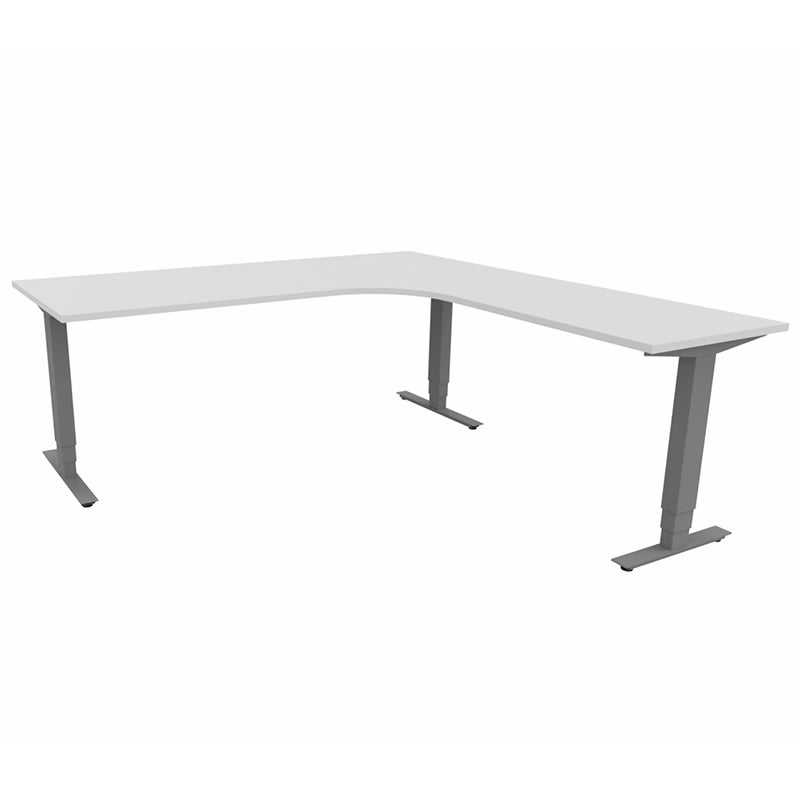 Höj- och sänkbart skrivbord Sense Aero Höger 3-ben, max 100 kg, 2000x2000, H630-1290 mm, Vit laminat, stativ Mörkgrå