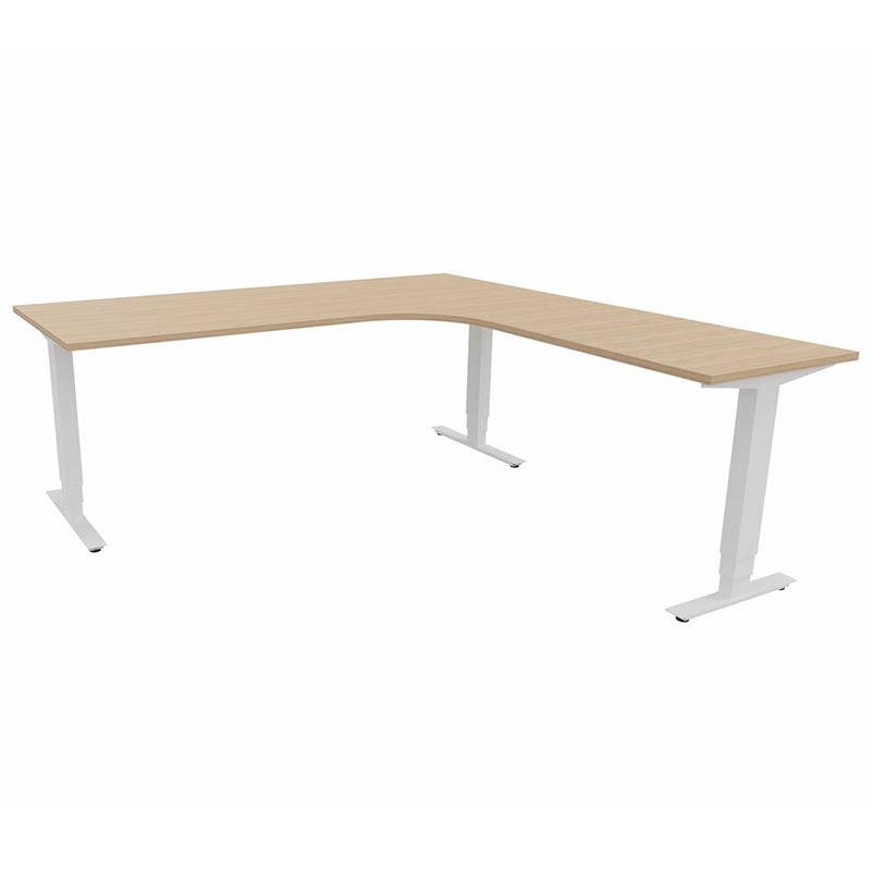 Höj- och sänkbart skrivbord Sense Aero Höger 3-ben, max 100 kg, 2000x2000, H630-1290 mm, Amber Ek laminat, stativ Vit
