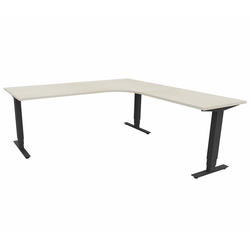 Höj- och sänkbart skrivbord Sense Aero Höger 3-ben, max 100 kg, 2000x2000, H630-1290 mm, Björk laminat, stativ Svart