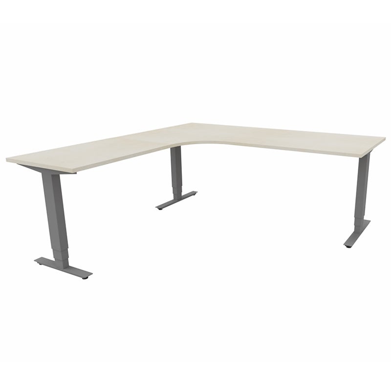 Höj- och sänkbart skrivbord Sense Aero Vänster 3-ben, max 100 kg, 2000x2000, H630-1290 mm, Björk laminat, stativ Mörkgrå