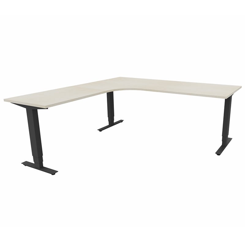 Höj- och sänkbart skrivbord Sense Aero Vänster 3-ben, max 100 kg, 2000x2000, H630-1290 mm, Björk laminat, stativ Svart