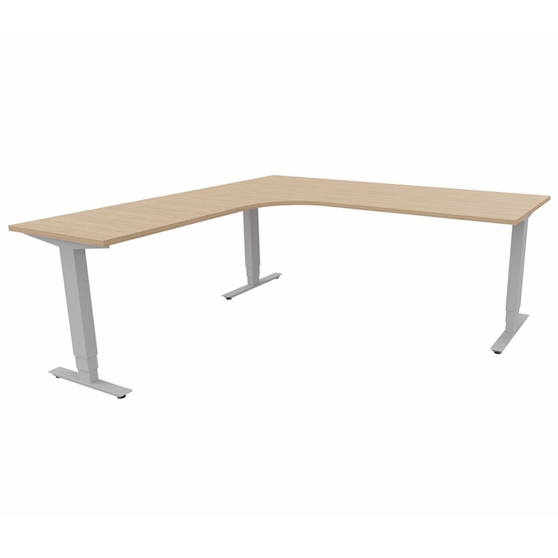 Höj- och sänkbart skrivbord Sense Aero Vänster 3-ben, max 100 kg, 2000x2000, H630-1290 mm, Amber Ek laminat, stativ Grå