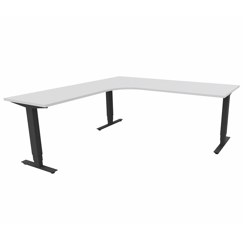Höj- och sänkbart skrivbord Sense Aero Vänster 3-ben, max 100 kg, 2000x2000, H630-1290 mm, Vit laminat, stativ Svart