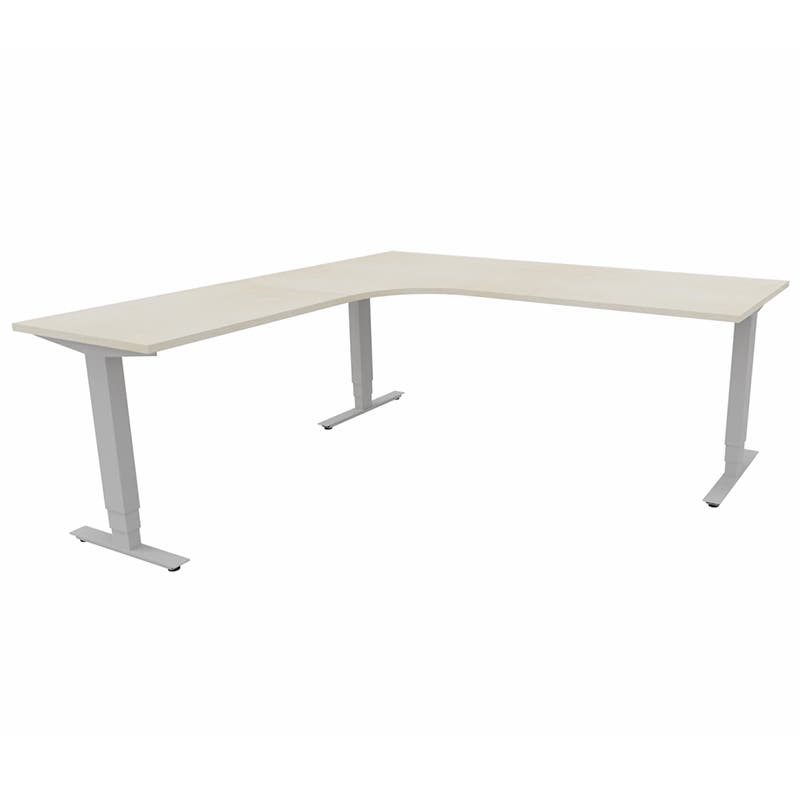 Höj- och sänkbart skrivbord Sense Aero Vänster 3-ben, max 100 kg, 2000x2000, H630-1290 mm, Björk laminat, stativ Grå