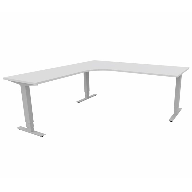 Höj- och sänkbart skrivbord Sense Aero Vänster 3-ben, max 100 kg, 2000x2000, H630-1290 mm, Vit laminat, stativ Grå