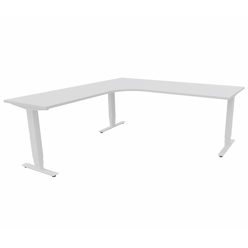 Höj- och sänkbart skrivbord Sense Aero Vänster 3-ben, max 100 kg, 2000x2000, H630-1290 mm, Vit laminat, stativ Vit
