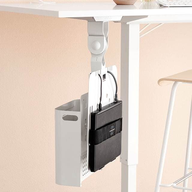 Praktiskt och genomtänkt förvaring för din laptop, placerar den horisontellt eller vertikalt under bordet. Plattformen är både roterbar (360°) och fällbar. För optimal flexibilitet, passar LiftLap även för små och medelstora datorer, vilket gör att du får två funktioner i en och samma hållare, du undviker därmed onödiga kostnader vid eventuellt framtida byte av datortyp. Komplettera med Liftsystem patenterade spännrem för stadigt montage.