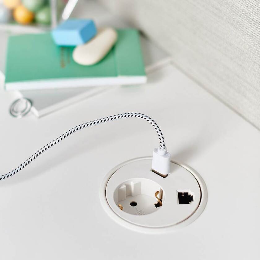 Enkel och prisvärd kabelanslutning för nedsänkning i bordsskiva. Borr Ø: 79 mm. Passar såväl skrivbord som konferensbord. Justerbar i 3 höjdnivåer. Välj mellan svart eller vitt utförande