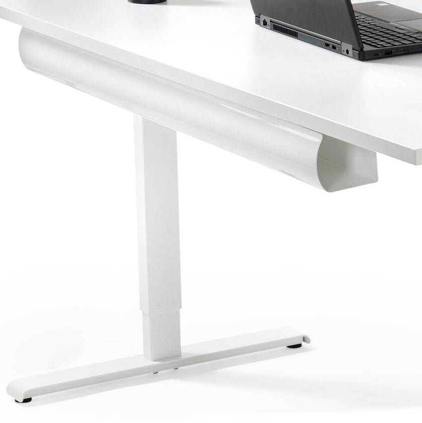 Elegant design med konvex front som passar i alla miljöer och typer av bord. En genuint smart konstruktion för enkelt montage med centrerad fästpunkt. Justerbar i tre fasta nivåer med snabblås utan verktyg. Snabblåset möjliggör även en enkel demontering för åtkomst av kablar och kontaktdon nere på golvet. Två uttag i bakstycket för enkel kabelgenomföring.