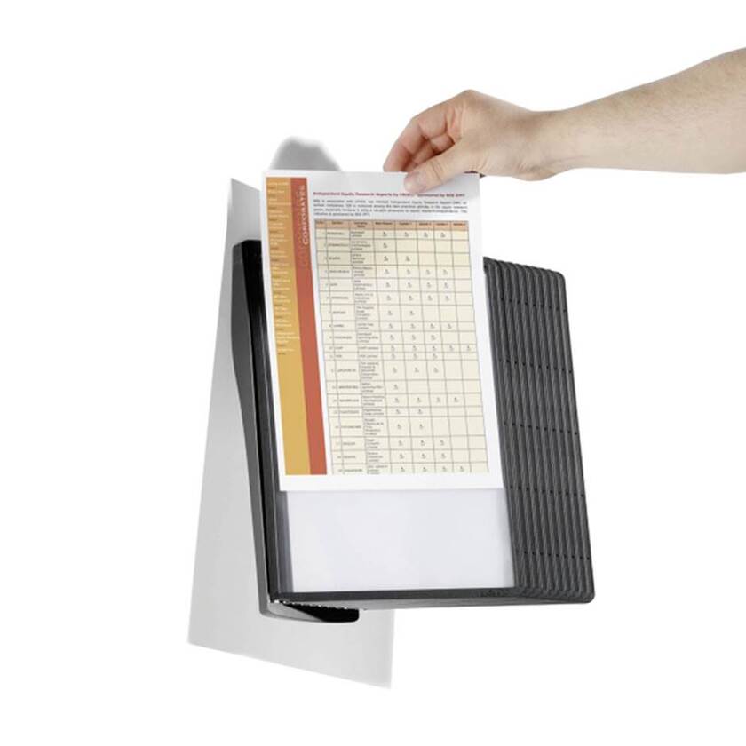 Komplett väggställ av stilren design kombinerat med högsta funktionalitet. Med 10 st A4-paneler av reflexfri polypropylenplast och rubrikhållare. Kan enkelt monteras på väggen. De miljövänliga panelerna är enkla att ta i och ur. Väggstället skyddar dina dokument samtidigt som du får en bra översikt.