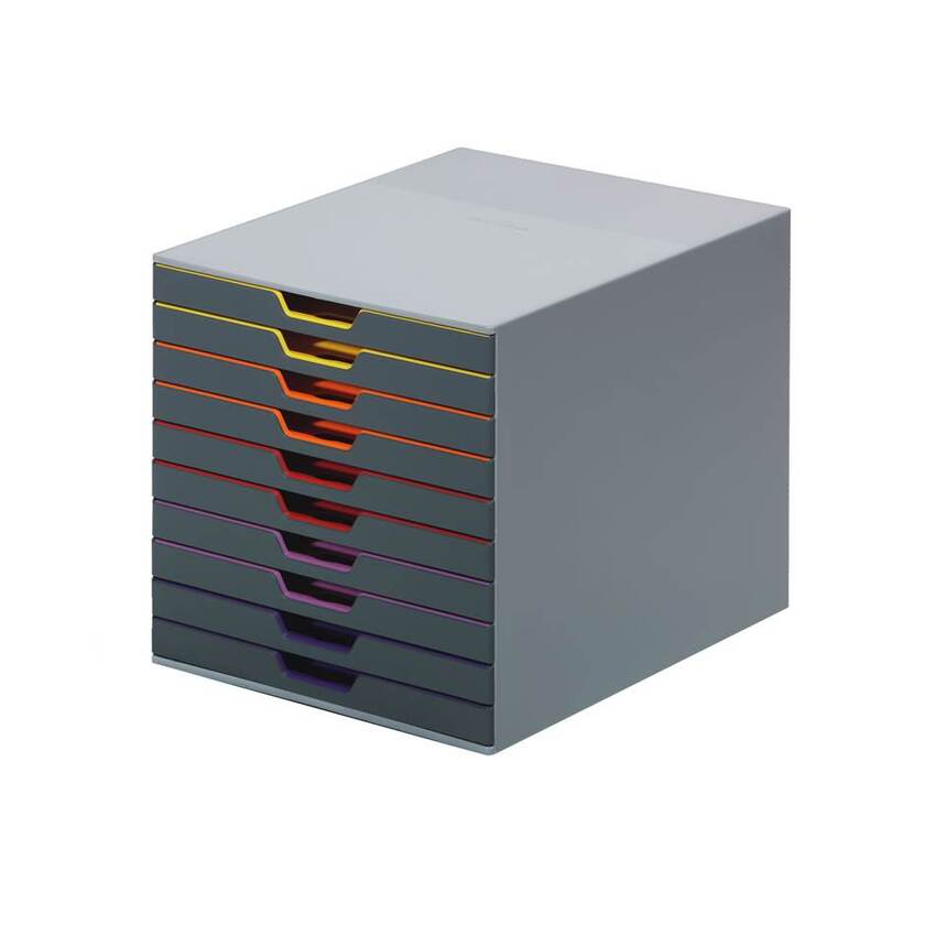 Varicolor är en attraktiv och innovativ blankettbox med tio färgglada lådor av högsta kvalitet. Lådornas olika färger förenklar organisering av dokument. Lådorna har utdragsstopp och är lätta att öppna och stänga. Passar för format upp till A4, C4, Folio och brevstorlek.