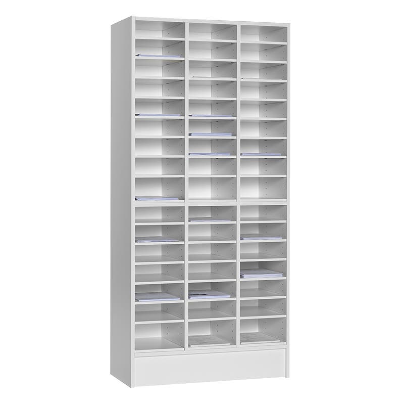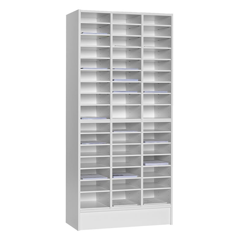 Hyllplanen är flyttbara med 32 mm intervall. Fackhöjd 84 mm. Angiven fackhöjd varierar något i botten och på mitten. Samtliga detaljer är tillverkade i bok-, björk- eller vit laminat. Finns även i eklaminat, se art.nr 47-0202.