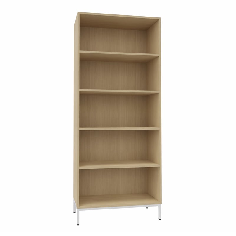 Bokhylla Sense, 5 plan, B800xD400xH1930 mm, Vitpigmenterad Ek laminat