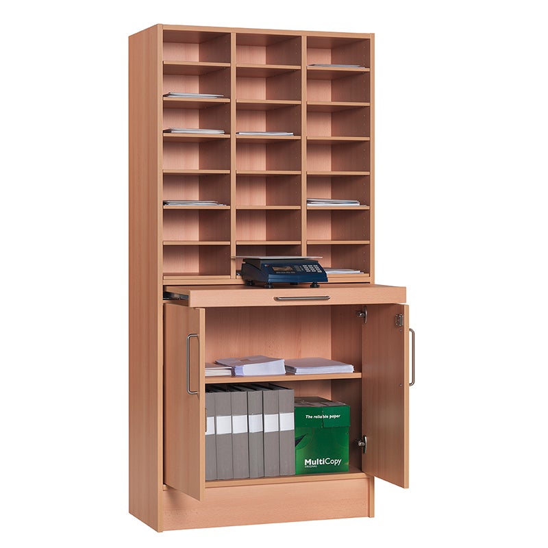 Postsorteringshylla Alvesta, 21 fack, underskåp & utdragshylla, 840x400x1800 mm