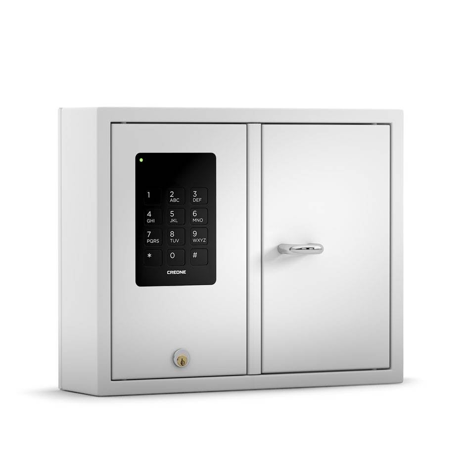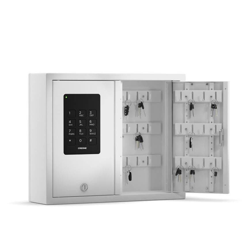 En serie nyckelskåp som öppnas med kod på 1–6 tecken. Nyckelskåpen finns i olika varianter med dörr alternativt lucka för separat öppning.
