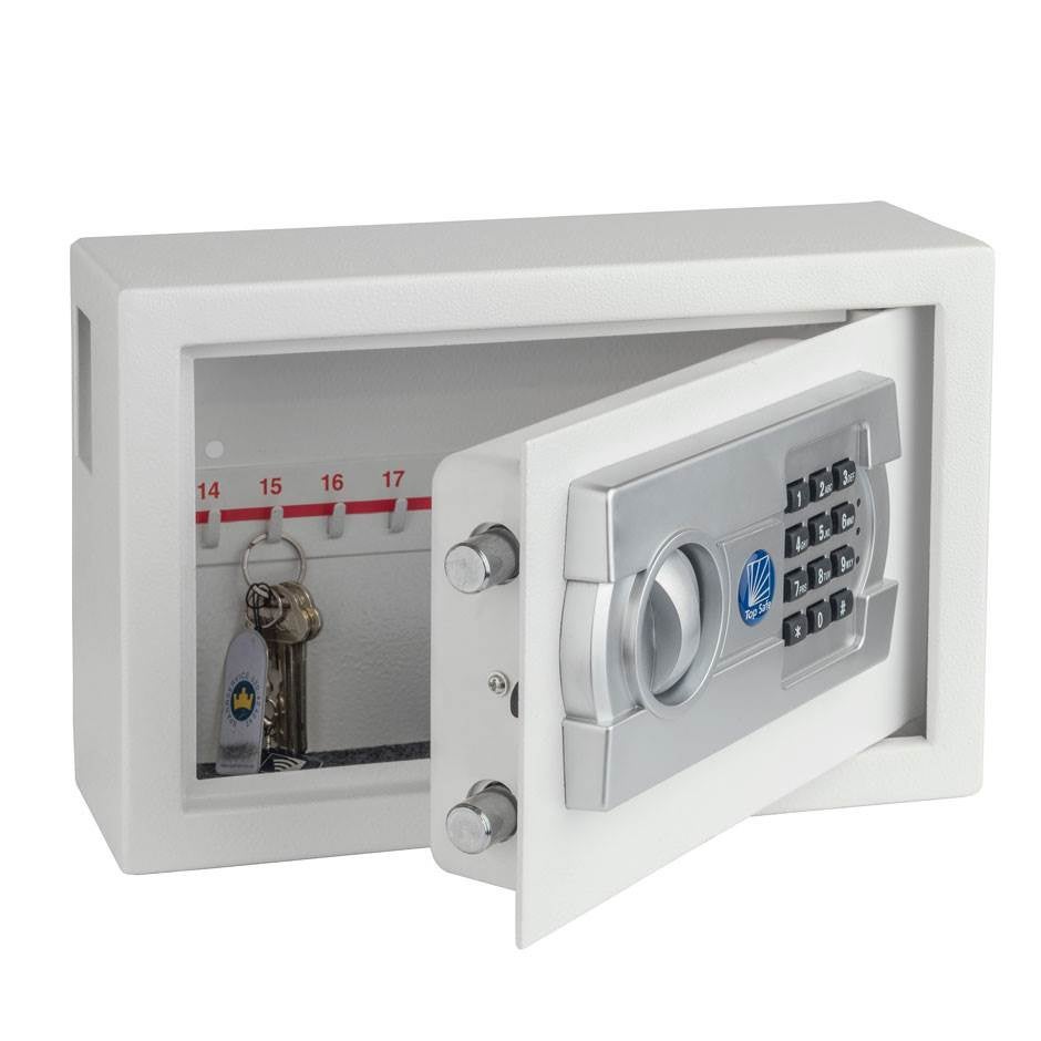 Nyckelskåp Net 24 är ett enkelt skåp med plats för 24st krokar. Skåpet har ett programmerbart elkodlås med 3-8 siffror. Förberett för fastbultning i vägg. Serien finns i 3 olika storlekar från 24, 40 och 120 krokar. Möjlighet att deponera nycklar via öppning på sidan. Levereras med 2 st nödöppningsnycklar.
