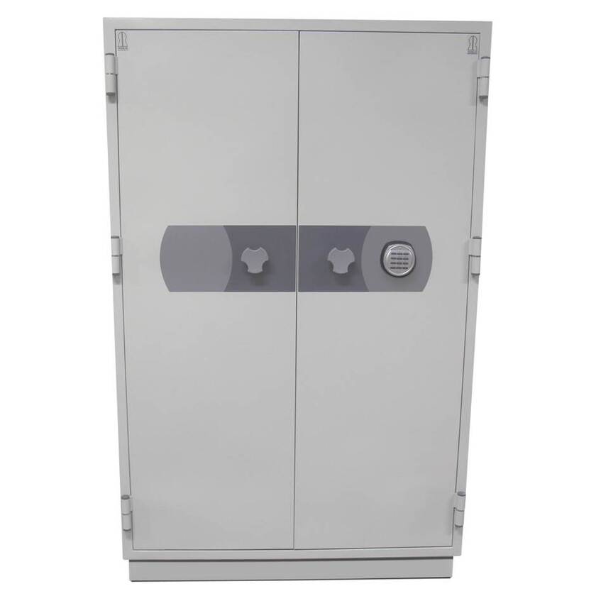 Dokumentskåp avsett för brandsäker förvaring av t.ex. affärshandlingar, bokföringsmaterial, dokument, kontrakt etc. i pärmar eller mappar. Skåpet är brandisolerat med en fast, gjuten massa för högisolerande verkan. Brandskydd 120 P enligt NT Fire 017. Skåpet är utrustat med elkodlås, vilket underlättar då många användare behöver ha tillgång till innehållet i skåpet.