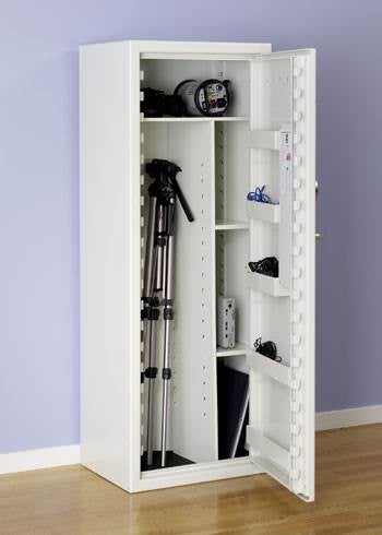 Som tillbehör finns extra hyllplan, elektroniskt kodlås, låsbart innerskåp med brevinkast, innerskåp med 3 låsbara fack, hängmappsram samt 3-sidig kroklist med 24 krokar.