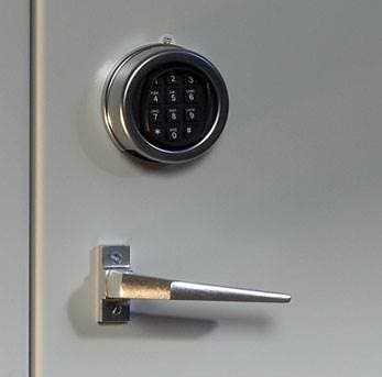 Godkänt säkerhetsskåp, certifierat enligt SS-3492. Levereras som standard med nyckellås, men kan även fås med elektroniskt kodlås. Vid fler än 2 användare rekomenderas kodlås, vilket gör åtkomligheten och användandet betydligt enklare.