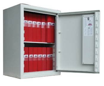 Godkänt säkerhetsskåp, certifierat enligt SS-3492. Plats för 2 rader pärmar. Levereras som standard med nyckellås, men kan även fås med ett kodlås som förenklar användningen av skåpet. Vid fler än 2 användare rekommenderas kodlås, vilket gör åtkomligheten och användandet betydligt enklare.