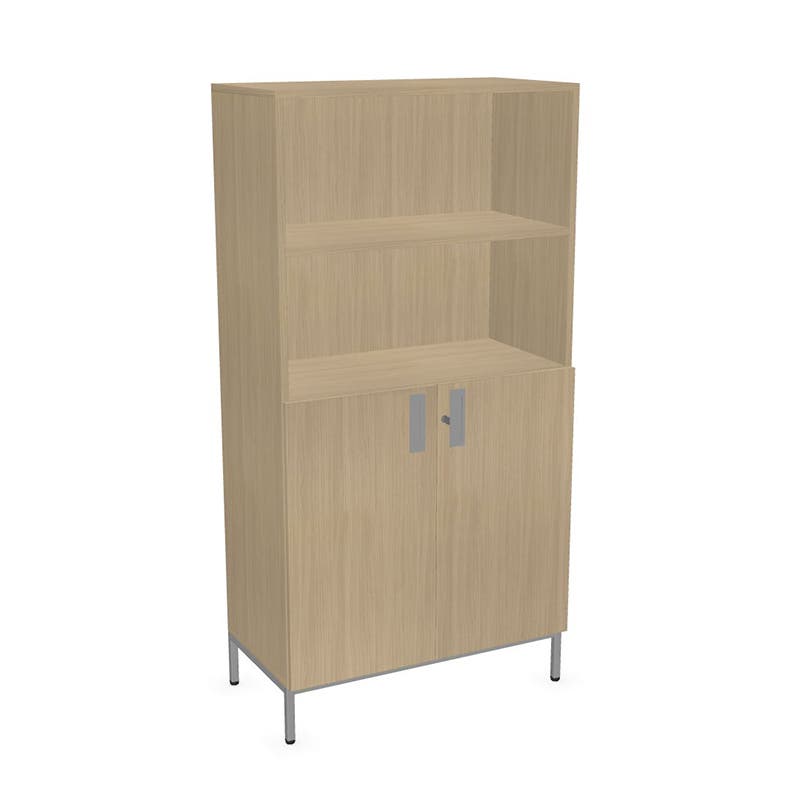 Bokhylla med 4 plan och låg dörr ur vår egna serie Sense. Skåpsdörrarna är låsbara och har infällda handtag. Serien Sense uppfyller naturligtvis den höga kvalitetsnorm som krävs i professionell arbetsmiljö.