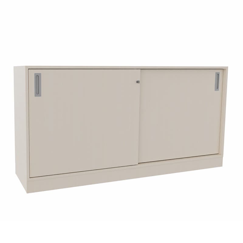 Skjutdörrskåp Sense med 2 plan. Med ett skjutdörrskåp optimerar du tillgängligheten och slipper ha öppna dörrar som är i vägen. Låsbart, infällda handtag.
