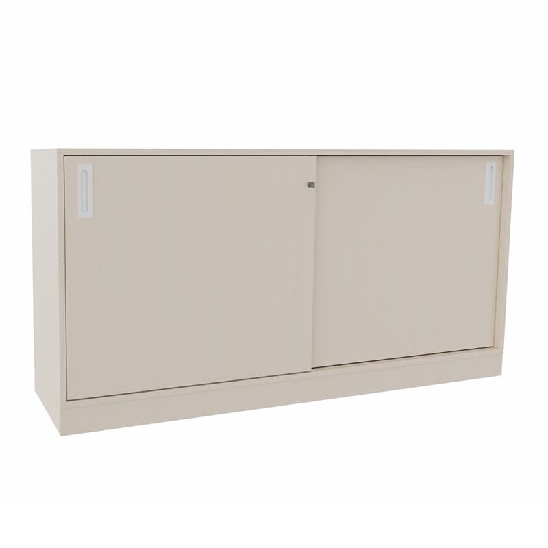 Skjutdörrskåp Sense med 2 plan. Med ett skjutdörrskåp optimerar du tillgängligheten och slipper ha öppna dörrar som är i vägen. Låsbart, infällda handtag.