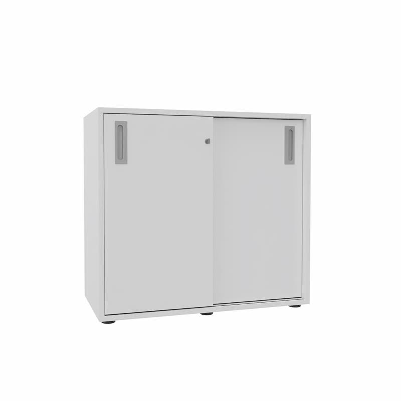 Skjutdörrskåp Sense, 2 plan, B800 x D400 x H740 mm, Vit laminat