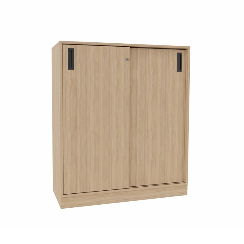 Skjutdörrskåp Sense, 3 plan, B1000 x D400 x H1155 mm, Ek Amber laminat