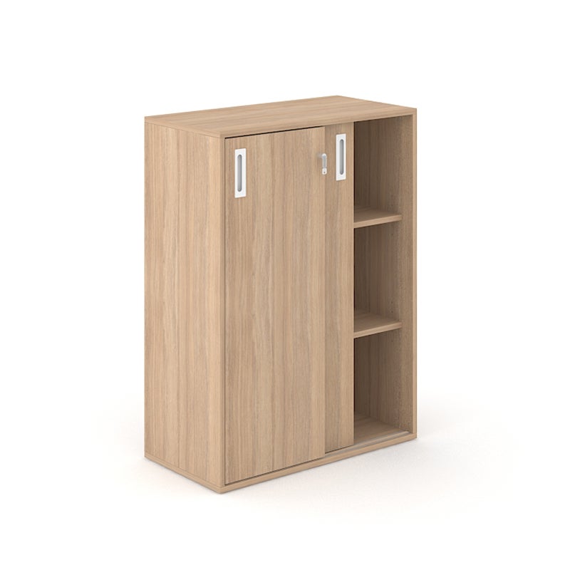 Skjutdörrskåp Sense med 3 plan. Med ett skjutdörrskåp optimerar du tillgängligheten och slipper ha öppna dörrar som är i vägen. Låsbart, infällda handtag.