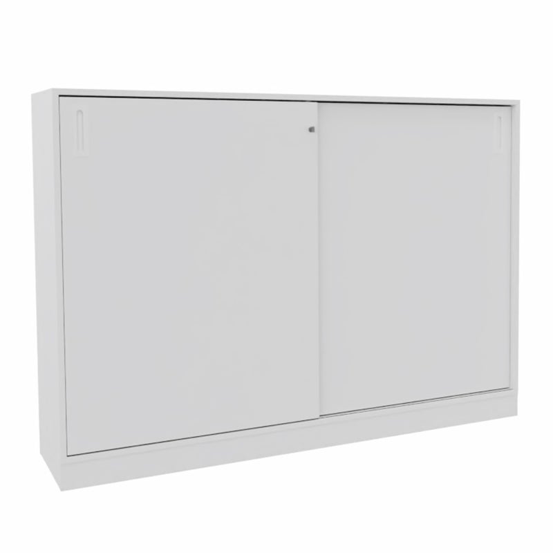 Skjutdörrskåp Sense med 3 plan. Med ett skjutdörrskåp optimerar du tillgängligheten och slipper ha öppna dörrar som är i vägen. Låsbart, infällda handtag.